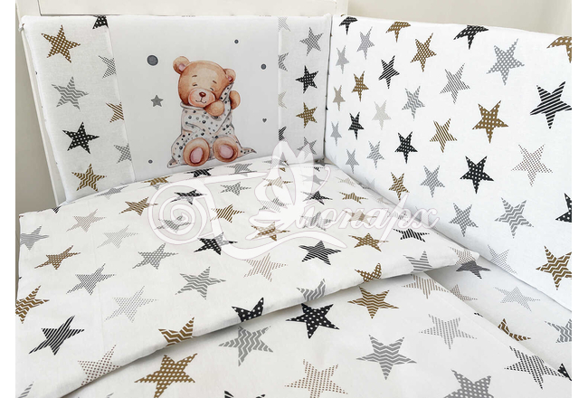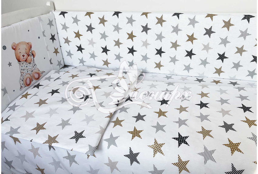 Бортики СО СЪЕМНЫМИ ЧЕХЛАМИ в кроватку: защитят Вашего малыша от ушибов, сквозняков, солнечных лучей и не дадут малышу запутаться в прутьях кроватки.