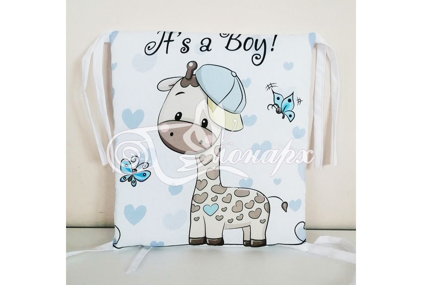 В наборе 4 плоских подушки на замочках для удобства стирки и с завязками для фиксации к кроватке.