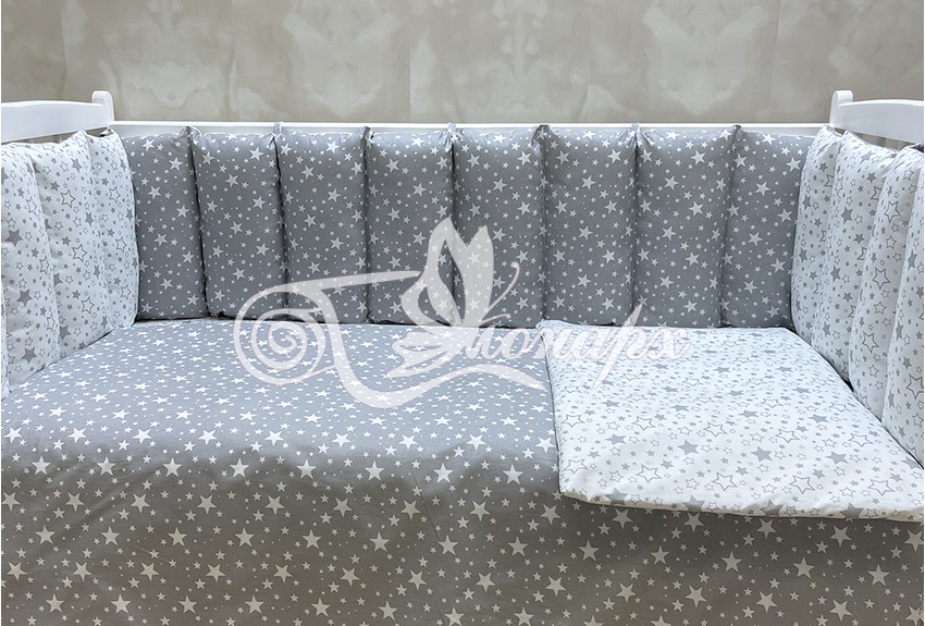 Бортики на замочках в кроватку: защитят Вашего малыша от ушибов, сквозняков, солнечных лучей и не дадут малышу запутаться в прутьях кроватки.