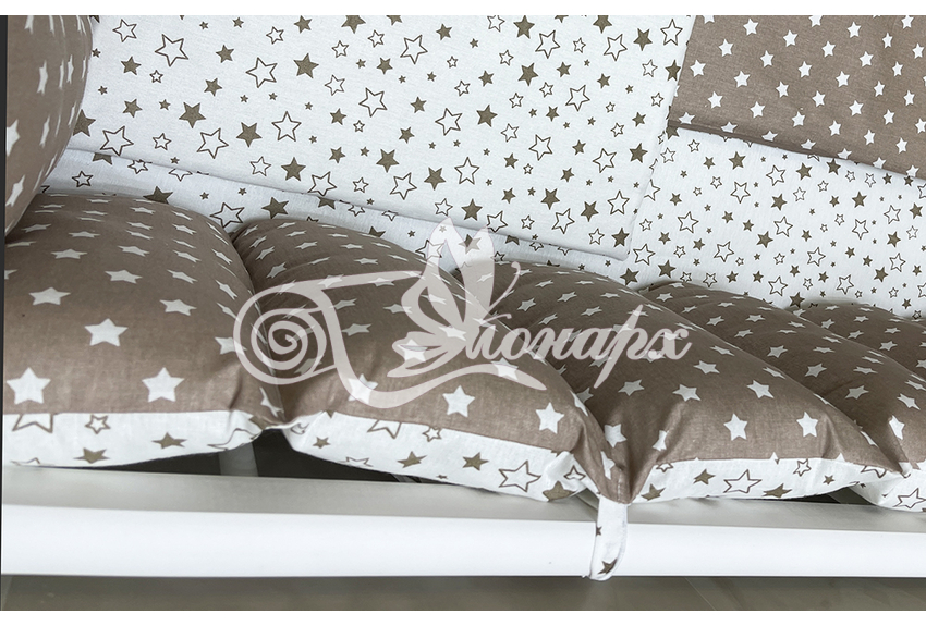 • Бортик-заборчик стеганый с синтепоном, плотно забит синтепухом (на замочках): - 2 шт. 60х34 см / - 2 шт. 120х34 см.