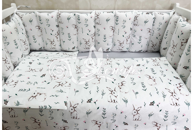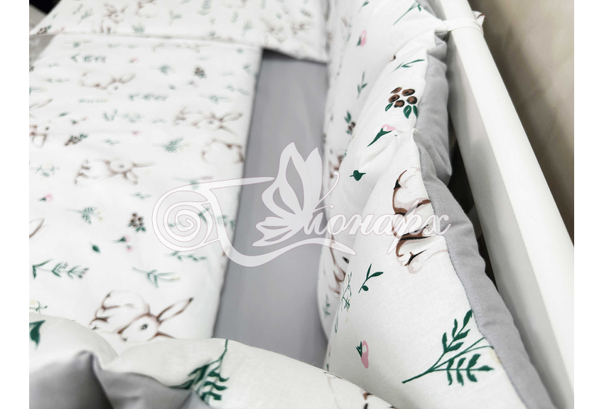- Бортик-заборчик стеганый с синтепоном, плотно забит синтепухом (на замочках): - 2 шт. 60х34 см / - 2 шт. 120х34 см.