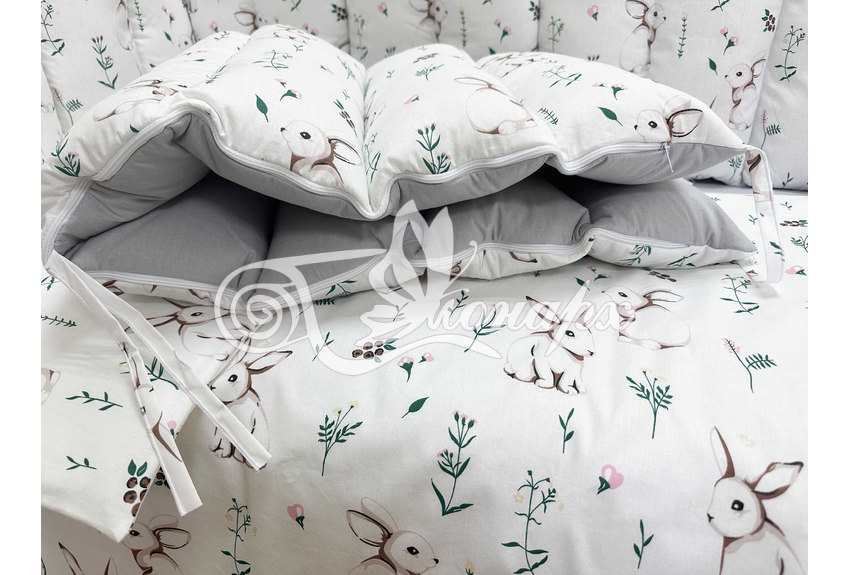 Бортики на замочках в кроватку: защитят Вашего малыша от ушибов, сквозняков, солнечных лучей и не дадут малышу запутаться в прутьях кроватки. - Подушка (100% хлопок- бязь) - 40х60 см.