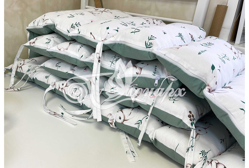 - Бортик-заборчик стеганый с синтепоном, плотно забит синтепухом (на замочках): - 2 шт. 60х34 см / - 2 шт. 120х34 см.