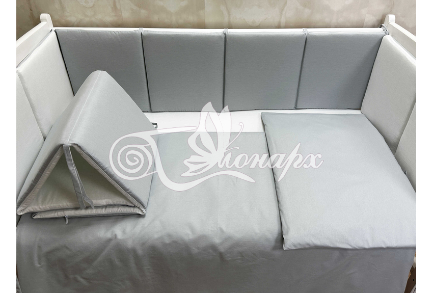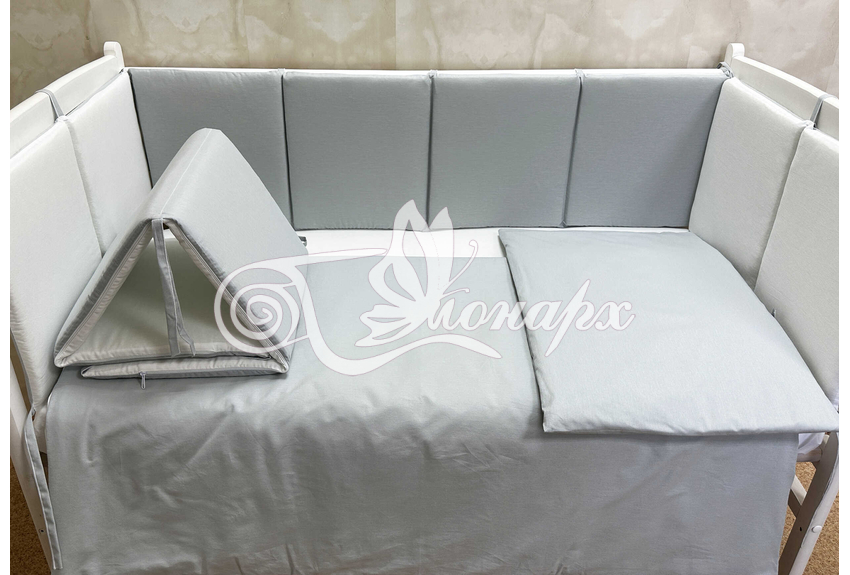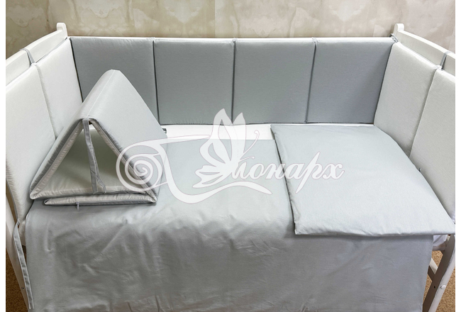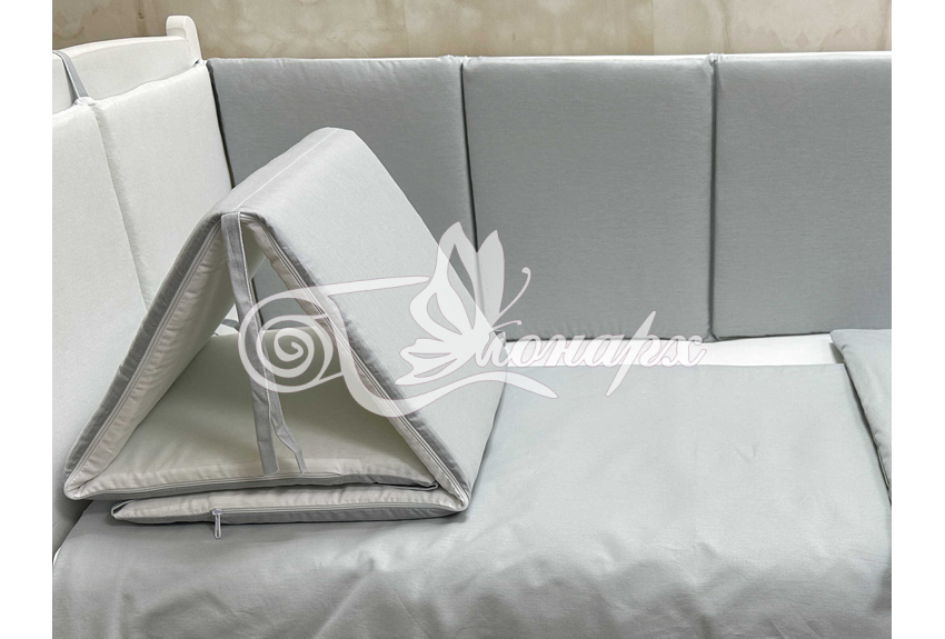 Бортики СО СЪЕМНЫМИ ЧЕХЛАМИ в кроватку: защитят Вашего малыша от ушибов, сквозняков, солнечных лучей и не дадут малышу запутаться в прутьях кроватки. - Простыня на резинке 60х120 см (подходит для стандартной кроватки)