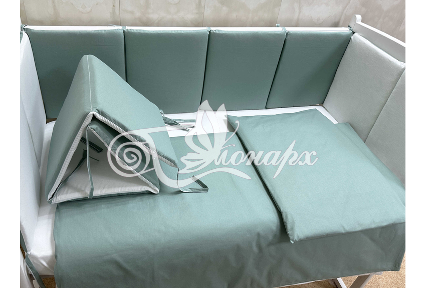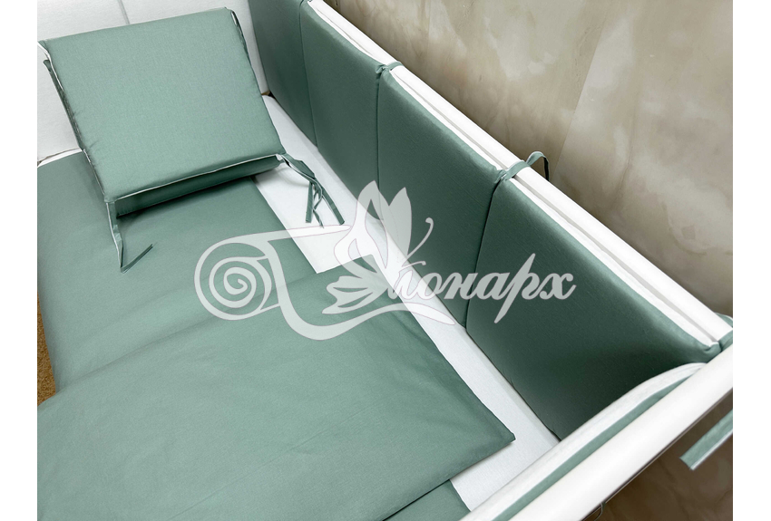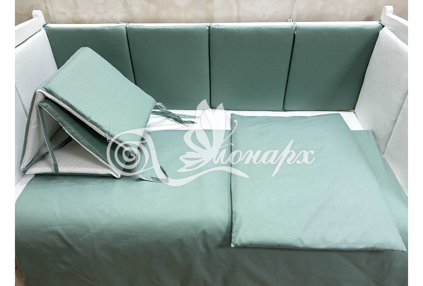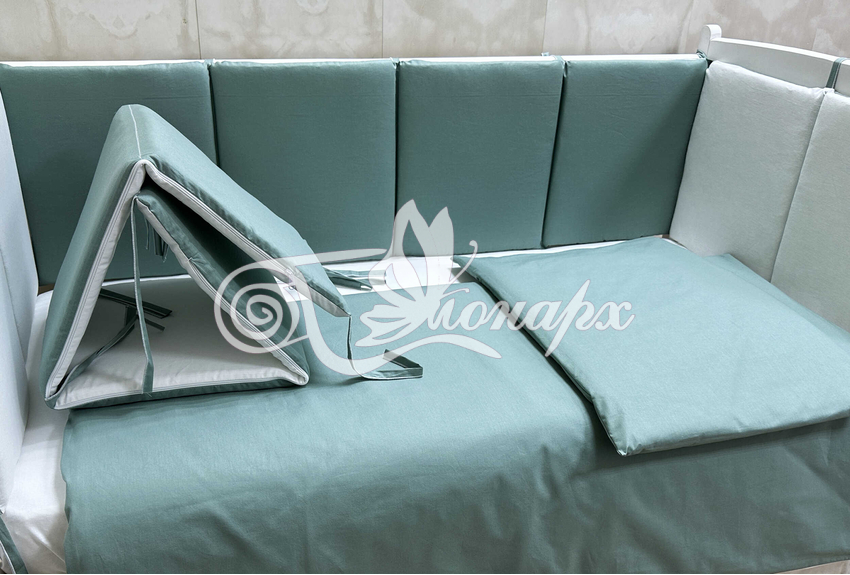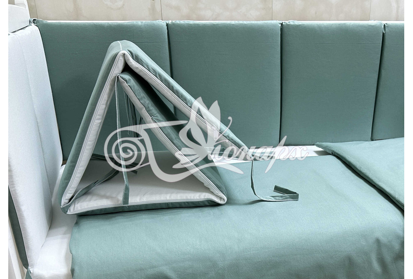 Бортики СО СЪЕМНЫМИ ЧЕХЛАМИ в кроватку: защитят Вашего малыша от ушибов, сквозняков, солнечных лучей и не дадут малышу запутаться в прутьях кроватки. - Простыня на резинке 60х120 см (подходит для стандартной кроватки)