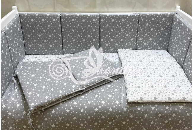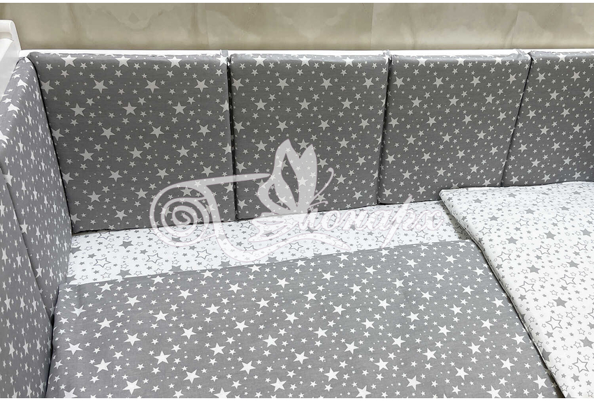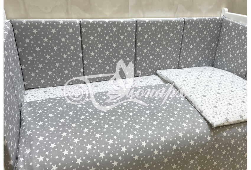 Бортики СО СЪЕМНЫМИ ЧЕХЛАМИ в кроватку: защитят Вашего малыша от ушибов, сквозняков, солнечных лучей и не дадут малышу запутаться в прутьях кроватки. - Простыня на резинке 60х120 см (подходит для стандартной кроватки)