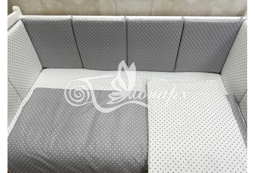 Бортики СО СЪЕМНЫМИ ЧЕХЛАМИ в кроватку: защитят Вашего малыша от ушибов, сквозняков, солнечных лучей и не дадут малышу запутаться в прутьях кроватки. - Простыня на резинке 60х120 см (подходит для стандартной кроватки)