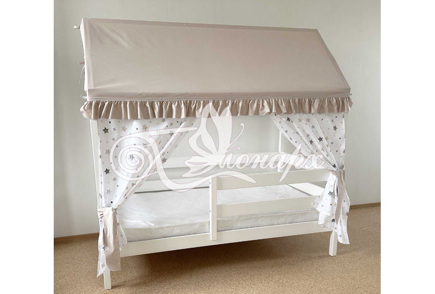 Крыша и шторы для кроватки домика ТД-36 купить в Миассе.Теги: комплект в кроватку домик, текстиль для домика, крыша для домика
